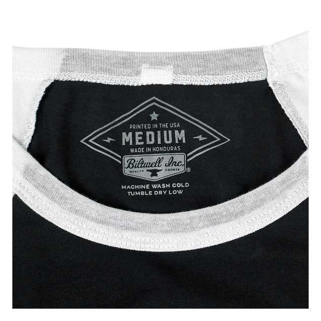 Dieses 100 % einlaufvorbehandelte Ragan-T-Shirt aus 5,8 oz. gekämmter und ringgesponnener Baumwolle ist mit wasserbasierten Tinten, gewebten Clip-Etiketten und einem siebgedruckten Etikett anstelle des lästigen Kragenetiketts schön detailliert.