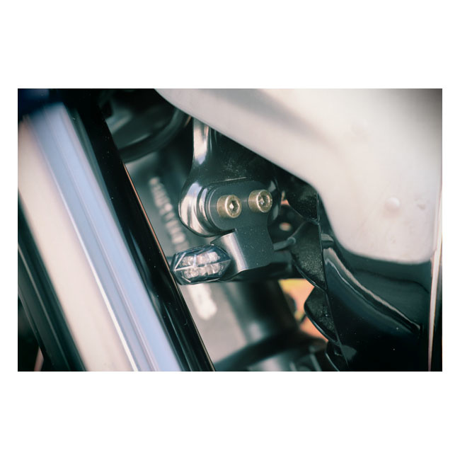 Lasergeschnittener Stahl. Schwarz glänzend pulverbeschichtet. Die Montage erfolgt an den Original-Blinkerhalterungen und ermöglicht die Montage individueller Blinker. Perfekt kombinierbar mit allen Kellermann- und ähnlichen Blinkern.