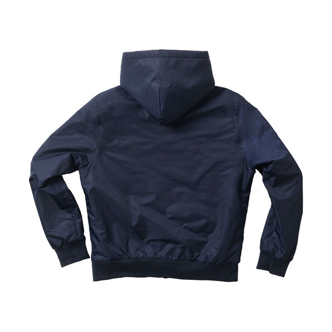 DieBFU Sherpa Nylon Jacke ist aus marineblauem Sherpa-Nylon gefertigt und verfügt über glatt gefütterte Ärmel für zusätzlichen Tragekomfort, eine warme Innenseite aus Polyester-Sherpa-Fleece und eine robuste Außenhülle aus Nylon. Die Vorderseite wurde mit dem erkennbaren West Coast Choppers Original-Logoaufnäher veredelt.