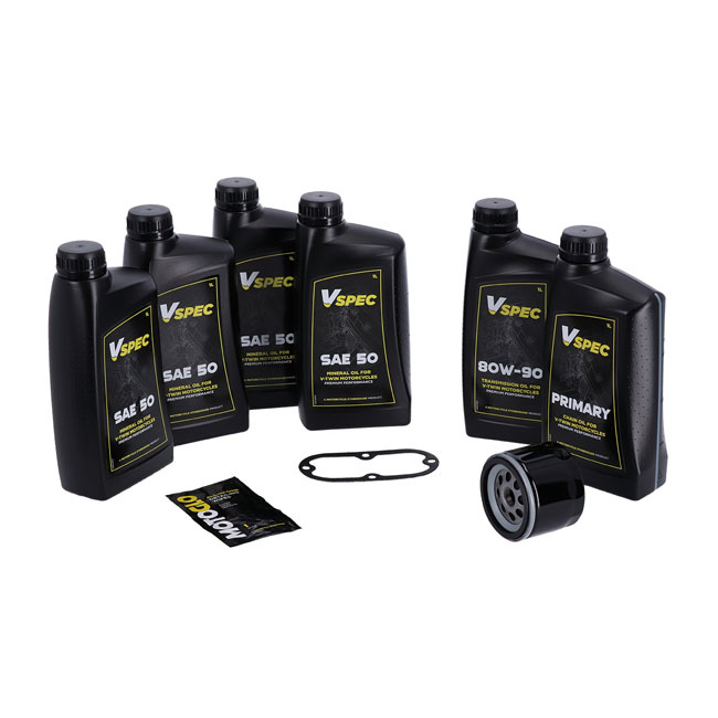 MCS Big SAE50 Mineral Engine Oil Service Kit includes quality mineral SAE 50 monograde Vspec engine oil for bikes that require mineral monograde oil. Meets or exceeds JASO MA/2.