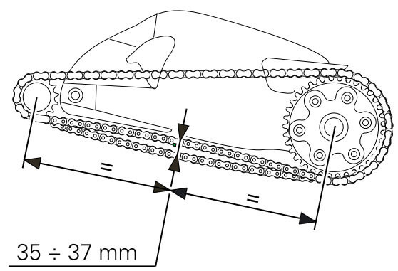 Step 2: Ask your buddy to check the give on the chain going up and down, the give should be measured around 35 and 37mm