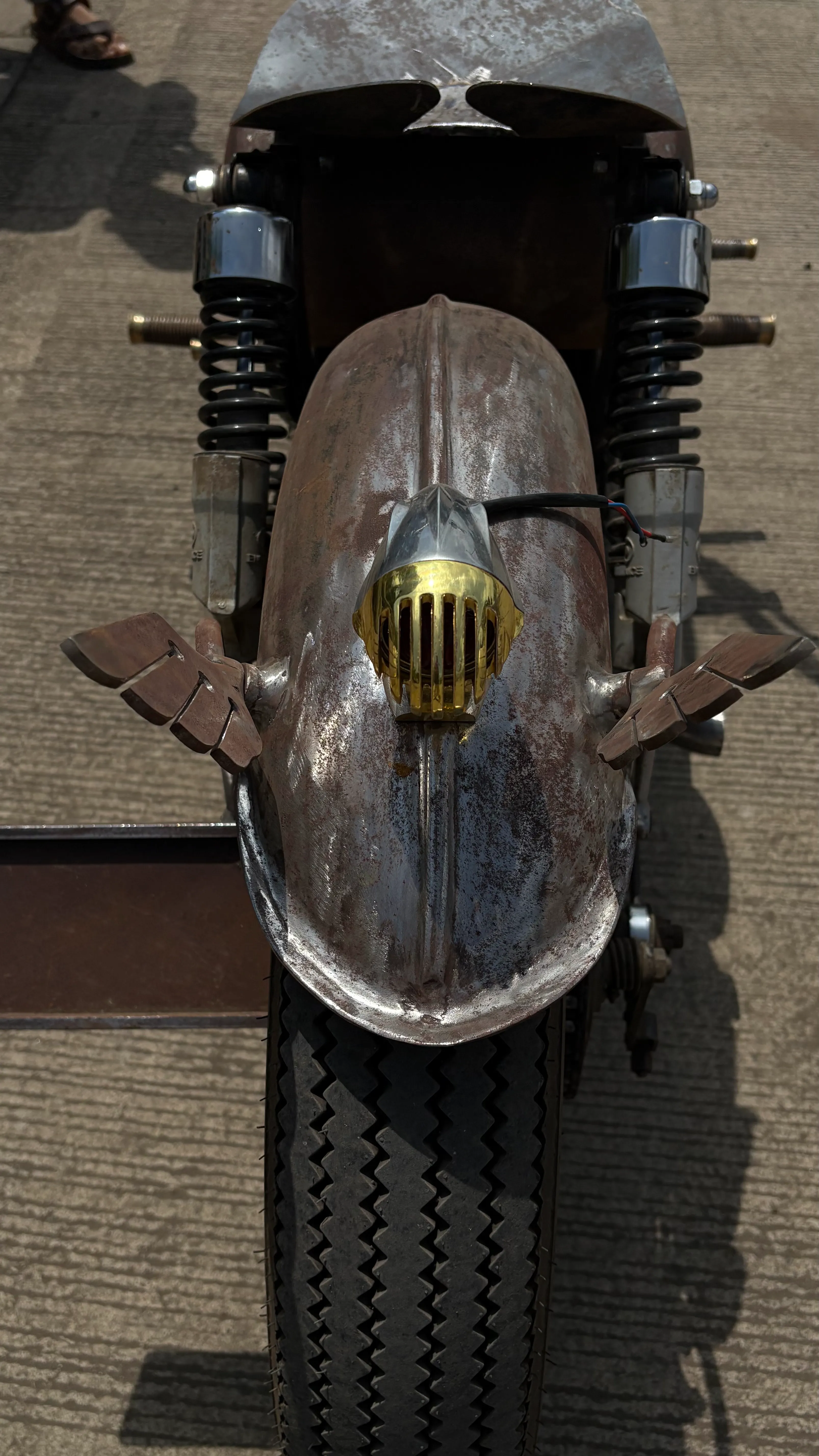 - Custom brass taillight that offers a vintage character