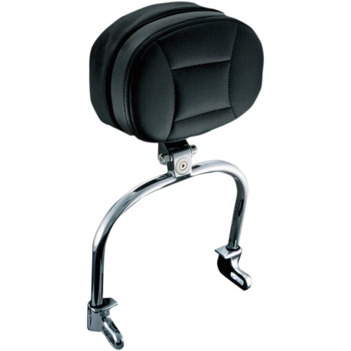 Driver Backrest Harley FL FX Softail. The backrest can be adjusted for height and angle to provide maximum comfort . With it's black vinyl pad assembly it can fold forward for easy passenger seating. The quick-detach mechanism allows easy removal of hoop and pad assembly. The convenient zip-closure storage pouch on rear Includes all necessary installation hardware.