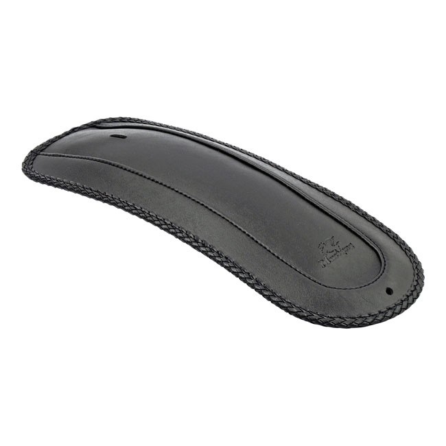 Fender Bib Leather for Harley Davidson (Select Model). Unique and stylish way to cover the rear fender when converting from the two-up to a solo seat. Uses the existing seat mounting hardware and fits perfectly to the contour of the fender for no gaps. Constructed of marine grade vinyl and backed with felt, it will last for years and not harm your paint job. Plain finish, this bib will match your stock, a Mustang or any other seat