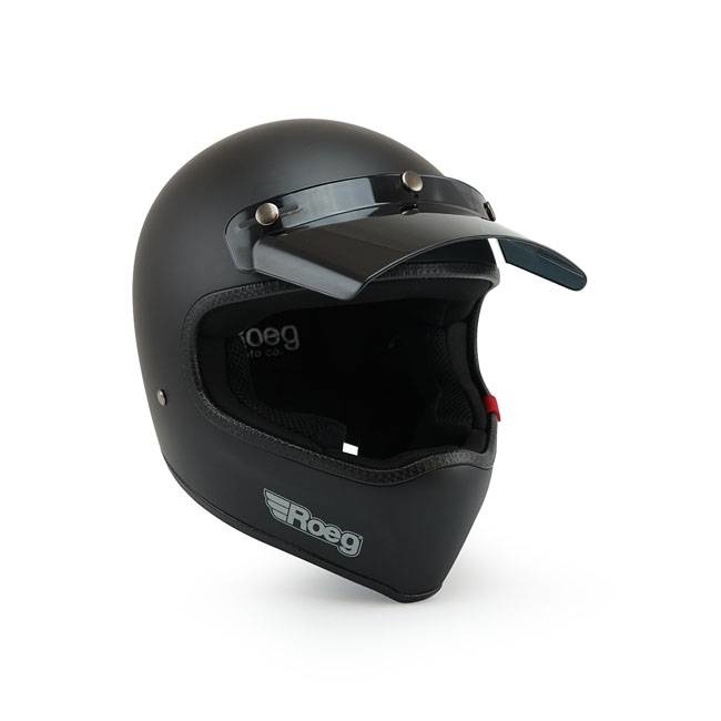 Peruna Motorcycle Helmet Matt Black. The Roeg Peruna full-face helmet is available in two lightweight fiberglass shell sizes and meets the necessary requirements for ECE-R22.05 approval.