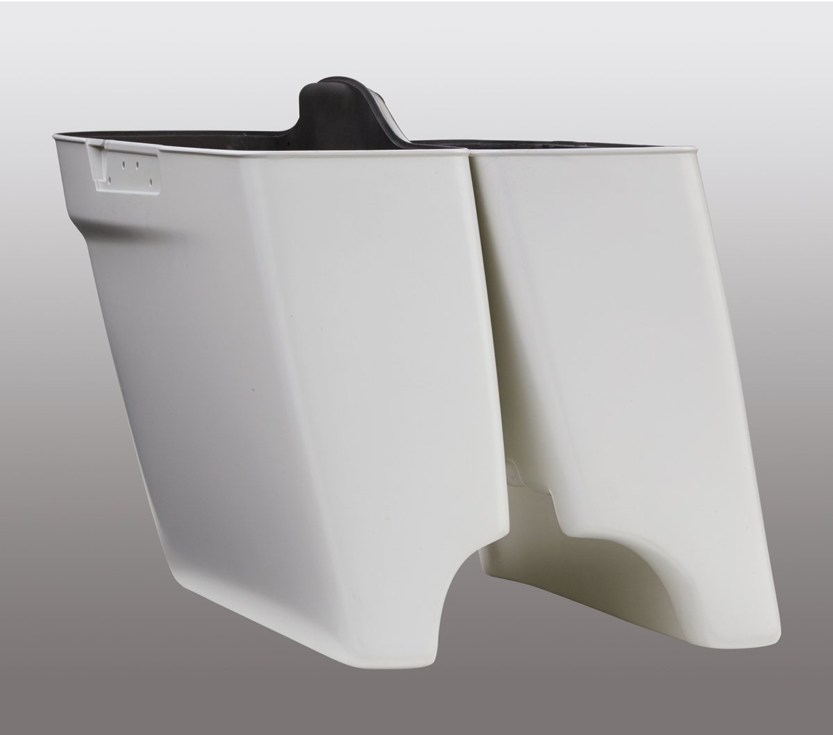 These saddlebags with bring a stylish touch to your motorcycle. They go all the way to the end of your exhaust. This is the perfect product to give your bike a slick look! They come with mounting points that accept the OEM material. The mounting is really quick. This product is 4" longer than the stock saddlebag.