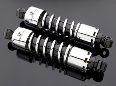Un dispositif de réglage de la précharge à cinq positions vous permet d'affiner votre conduite, que vous soyez un pilote léger ou un joueur difficile. Avec plusieurs options telles que des couvercles entièrement chromés ou noirs, des ressorts chromés ou noirs, Standard ou Heavy-Duty. Pour la plupart des applications, il existe certainement un 412 qui convient à vous et à votre vélo.