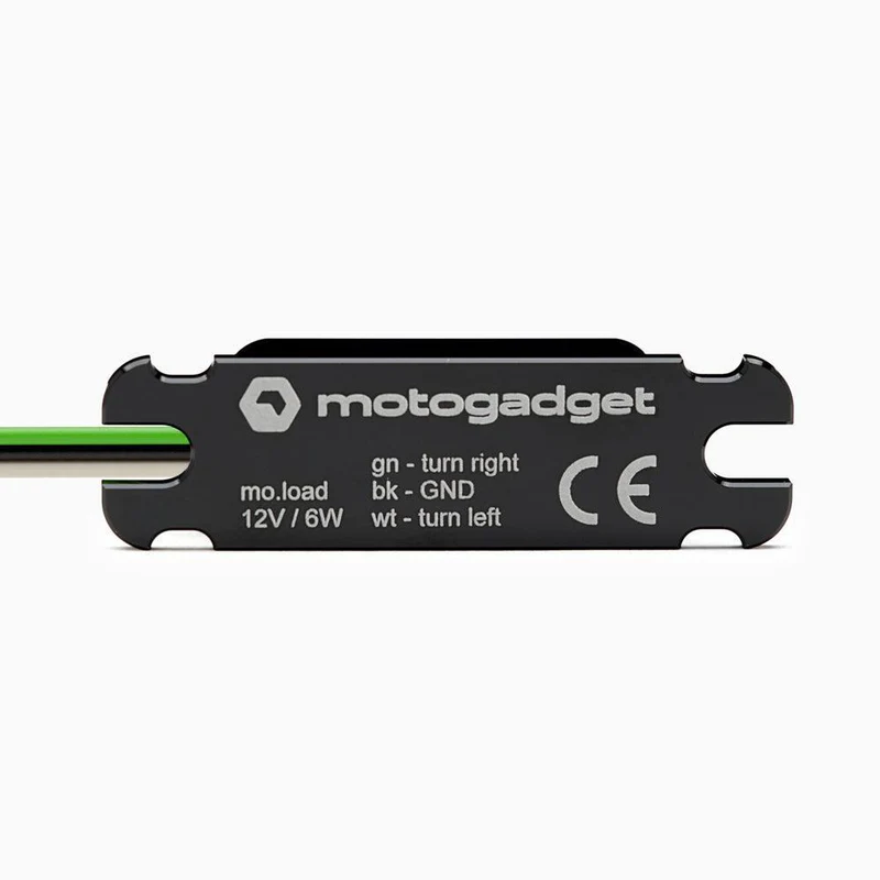 Utilisé pour remplacer les clignotants à LED d'origine/personnalisés par d'autres clignotants à LED personnalisés, qui peuvent fonctionner avec une puissance/charge différente. Le module mo.load permet de régler la charge/fréquence de clignotement des clignotants à LED, afin que l'ECE ne déclenche pas de code défaut. La vitesse de clignotement peut être réglée en 16 étapes grâce au cadran de fréquence. Le module mo.load offre jusqu'à 7,5 W de puissance de réglage pour couvrir tous les problèmes de code défaut. Ses dimensions compactes permettent une installation rapide et facile, « hors de vue ». - Pour 6 V ou 12 V - Dimensions : 49,5 mm x 14 mm x 12 mm - Poids : 15 g - Longueur du câble : 30 cm. Remarque : non compatible avec les conversions de clignotants à incandescence en clignotants à LED.