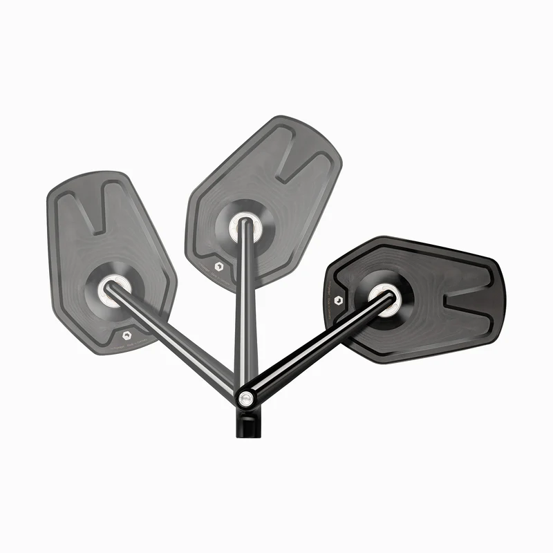 Le corps et le bras du rétroviseur sont usinés en aluminium massif sur des machines CNC et anodisés pour une qualité optimale. Toutes les vis sont en acier inoxydable. La rotule précise assure un réglage confortable et très stable du rétroviseur. Il est donc impossible de briser ou de faire tomber le verre.