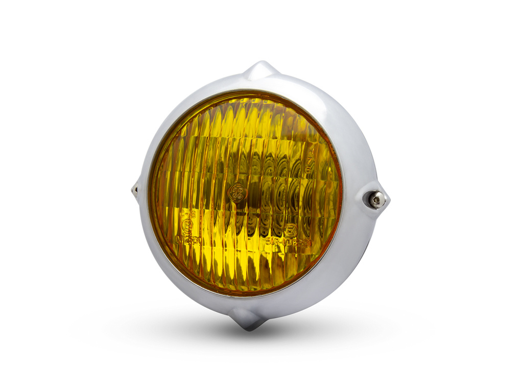 Phare vintage poli de 5,5 pouces, chrome et jaune