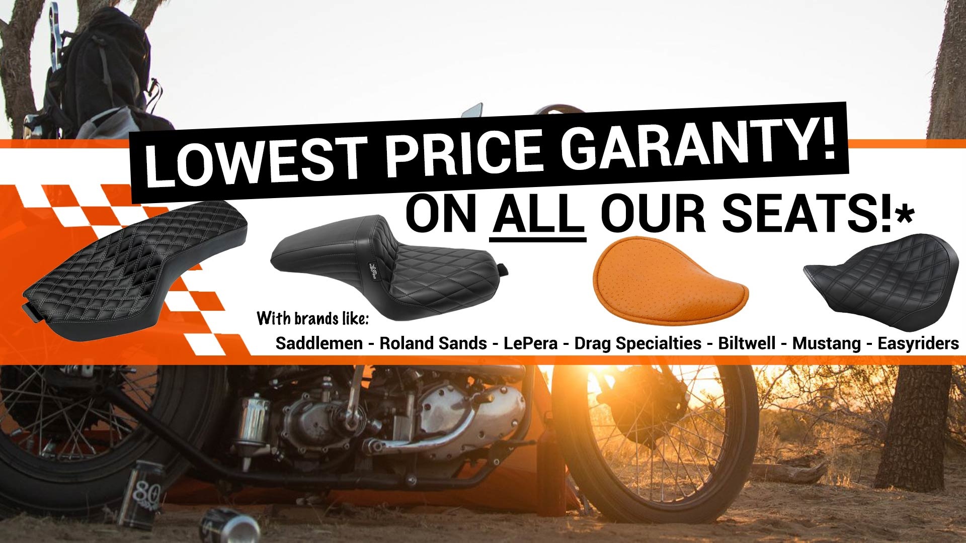Are you looking for a seat for your Harley Davidson, Honda, Kawasaki, Yamaha, Suzuki or even Triumph; we can help you out for a good price! A nice seat does increase the comfort and style of your motorcycle a lot and there are many brand and even more models to choose from.