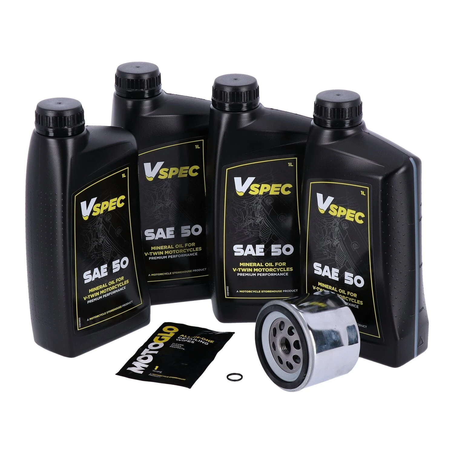 De MCS SAE 50 motorolie servicekit is verkrijgbaar in een hoeveelheid van 4 liter. Deze kit bevat originele Vspec hoogwaardige SAE monograde minerale motorolie voor klassieke motoren die SAE 50 motorolie vereisen. Deze olie wordt gebruikt voor het onderhoud van uw motorfiets tijdens de reguliere onderhoudsbeurt of voordat u deze voor de winterstalling opslaat.