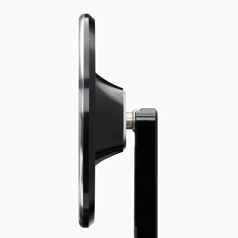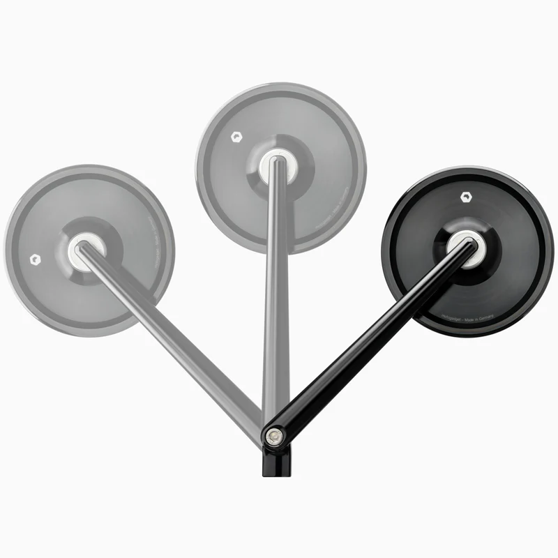 De spiegelbehuizing en spiegelarm zijn op CNC-machines uit massief aluminium gefreesd en hoogwaardig geanodiseerd. Alle schroeven zijn van roestvrij staal. Het precieze kogelgewricht zorgt ervoor dat de spiegel comfortabel en zeer stabiel is te verstellen. Glasbreuk of uitvallen is simpelweg uitgesloten.